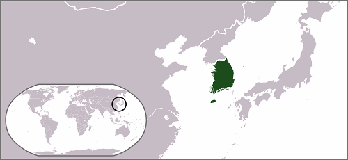 เป็นประเทศในแถบเอชียตะวันออก พรมแดนทางเหนือติดกับประเทศเกาหลีเหนือ มีประเทศญี่ปุ่นตั้งอยู่ทางตะวันออกเฉียงใต้ ประเทศเกาหลีแทบจะไม่มีชนชาติอื่นนอกจากคนเกาหลีเอง แต่ก็มีชาวจีนประมาณ 3 หมื่นคน ซึ่งอยู่ตามเขตเมืองหลวงมาช้านานแล้ว และยังมีชาวฟิลิปปินส์อีกปรมาณ 7 หมื่นคน